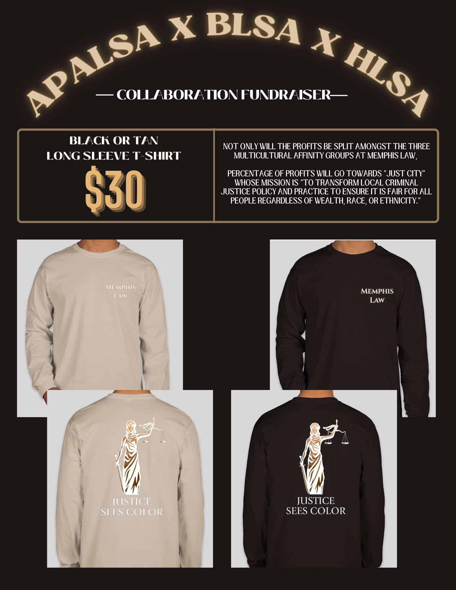 Not only will the profits be split amongst the three multicultural affinity groups at Memphis law, a percentage of profits will go towards “Just City.”